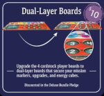Atualize os 4 tabuleiros de cartolina para tabuleiros de camada dupla que protegem seus marcadores de missão, atualizações e cubos de energia