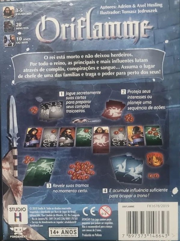 Em Oriflamme, os jogadores se encontram no meio de uma disputa medieval sobre a coroa. O rei está morto! Vida longa ao rei! Como chefes de famílias influentes, os jogadores se esforçam para chegar ao poder com astúcia e malícia, poder e força, virtude e infâmia. O objetivo deles: o trono do rei!