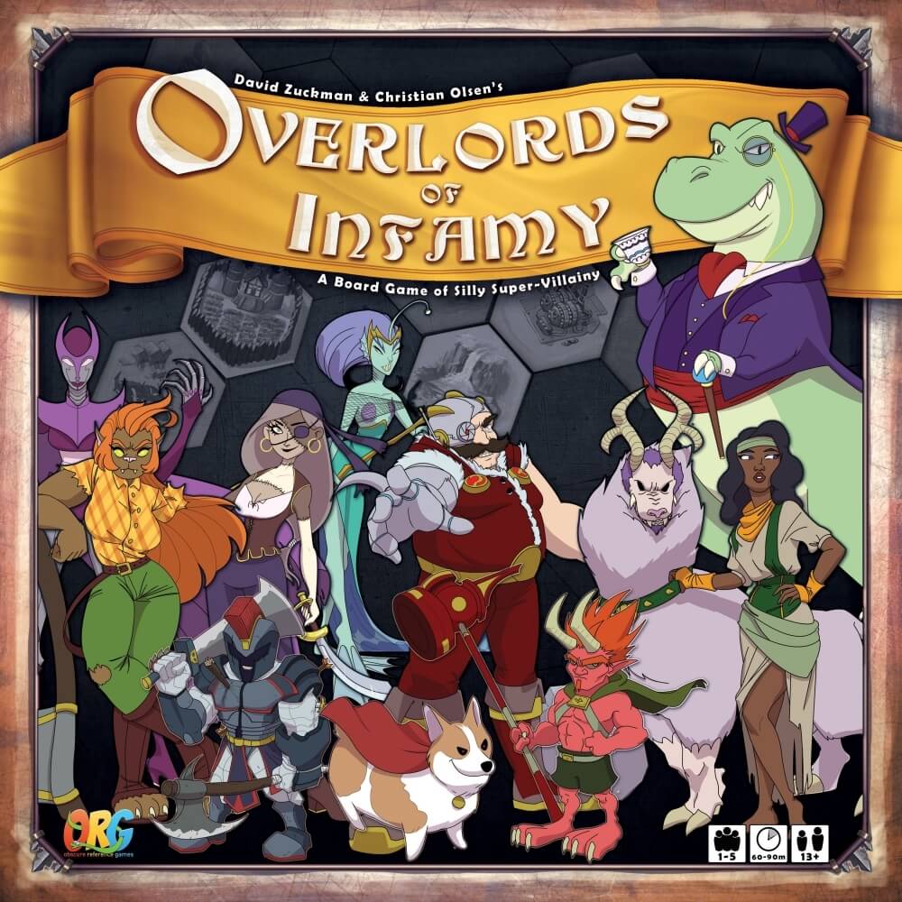 Em Overlords of Infamy, você assume o papel de um Evil Overlord com o objetivo pessoal de tornar seus súditos o mais miseráveis possível, enquanto outros overlords fazem o mesmo com seus súditos. Você consegue isso colhendo uma variedade de materiais para completar uma miríade de Planos Nefastos que vão desde "Roubar Doces de Bebês" e "Deixar as Meias de Todos Ligeiramente Úmidas" até "Explodir a Lua!" e "Dividir por zero". O tempo todo, um herói aventureiro irritantemente justo do Reino do Bem faz cruzadas tentando frustrar o plano de cada Overlord. Você descobrirá que suas ações têm consequências à medida que a tensão mundial aumenta e culmina em um evento global aleatório que pode ser catastrófico ou benéfico. E se isso não for loucura o suficiente, os outros Overlords estarão cometendo atos de espionagem contra você! Conclua suas tramas, evite a competição e repele o Herói Aventureiro e você pode ser denunciado como o Overlord of Infamy!