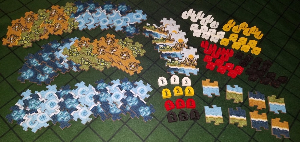 Ao colocar tiles, você procurará reivindicar regiões de Florestas ou Montanhas com seus meeples terrestres e regiões de Shoals ou Deep Sea com seus meeples de navio. Quando os tiles formam um buraco no mundo, o jogador que explorou a maior parte dos tiles colocará uma porta da Dungeon no chão.
