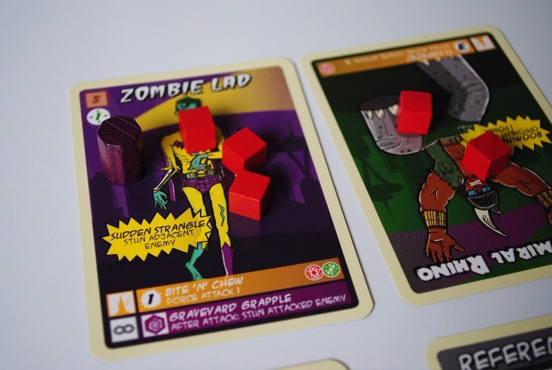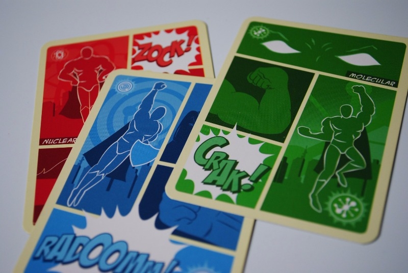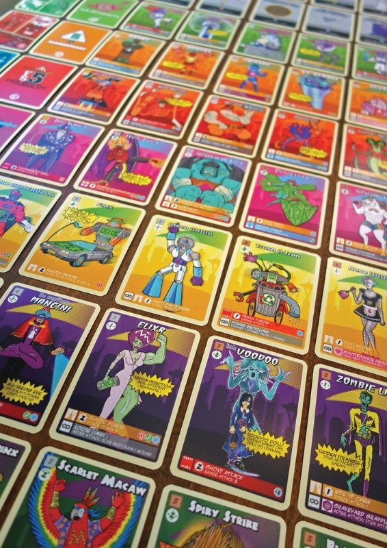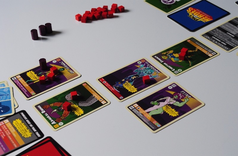 O coração do jogo são as cartas de herói. Eles representam um herói no jogo e são modeladas após Vintage Trading. Na parte da frente é a imagem do herói, e todas as informações sobre seus poderes; na parte de trás estão estatísticas divertidas e uma história de origem!