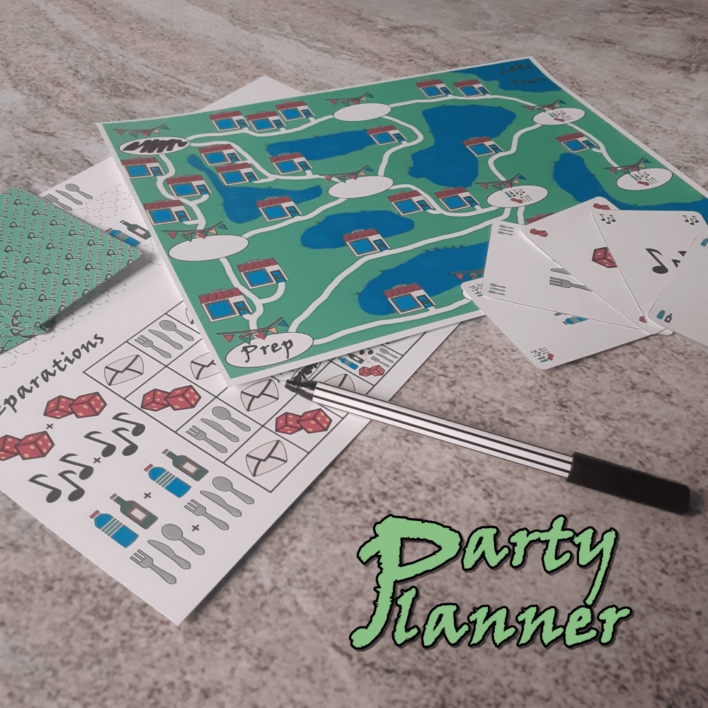 A cada turno, você seleciona um dos dois recursos sorteados. Quando você tiver recursos suficientes, poderá usá-los para se preparar para festas ou se mudar para/organizar novos locais.