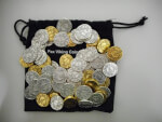 80 moedas de metal para substituir as moedas de papelão do jogo Pax Viking. O conjunto contém 20 moedas de "Ouro" e 60 moedas de "Prata".