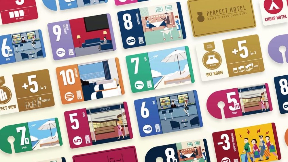 Perfect Hotel é um jogo de cartas em que existem bônus para coisas como a mais alta cobertura, o último andar mais luxuoso e assim por diante.