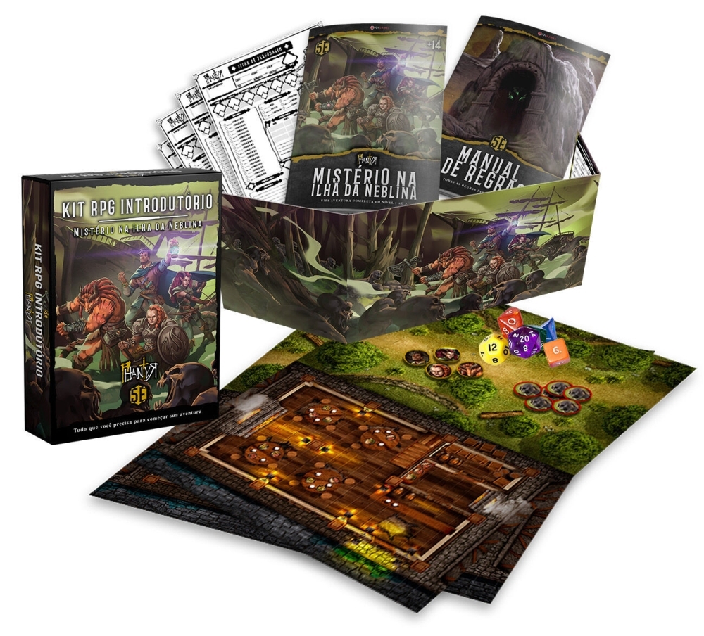 O Kit RPG Introdutório "Mistério na Ilha da Neblina" foi meticulosamente projetado por mestres e jogadores experientes, ansiosos por compartilhar sua paixão pelo RPG de mesa com você. Com elementos narrativos envolventes, apoio aos jogadores e mestres iniciantes, para facilitar as regras e a condução das aventuras, um mundo rico e desafiador e regras adaptadas para a 5ª Edição. Este kit oferece tudo o que você precisa para iniciar sua própria aventura.