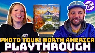 Photo Tour é um jogo emocionante que permite viajar e tirar fotos impressionantes de belos lugares nos EUA e no Canadá. Como fotógrafo, seu objetivo é capturar atrações e colocar seus cartões em seu diário de viagem (tapete de jogador). Cada foto tirada possui uma habilidade única que permite construir um mecanismo de cartas para tornar cada curva mais eficiente.