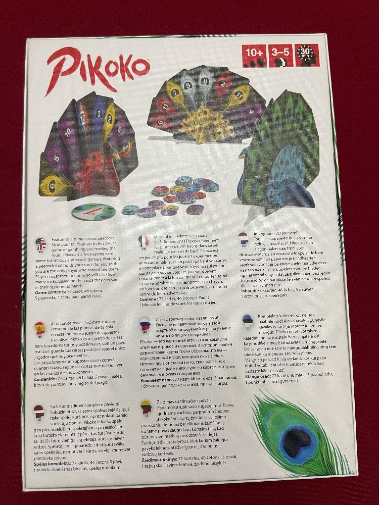 Pikoko é um jogo de vazas que segue as regras convencionais de fazer combinações com duas reviravoltas: