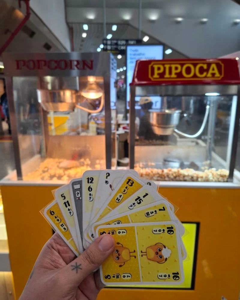 Pipoca é um jogo para duas pessoas que não precisa de mesa nem de espaço — dá para jogar em pé, encostado numa parede ou até na fila do cinema. Ideal para passar o tempo enquanto espera por algo com alguém!