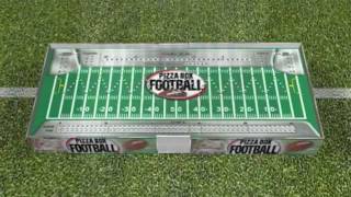 Pizza Box Futebol tem a forma de uma caixa de pizza ... e se abre para um jogo estratégico de futebol americano projetado para oferecer toda a intensidade da disputa real. Os jogadores desdobram o tabuleiro de jogo (o campo) e colocam dentro da caixa de pizza desdobrado. Há cartas de referência para orientar os jogadores de como eles podem jogar e que dados rolar.