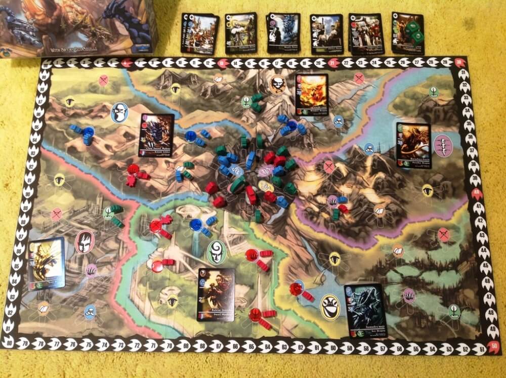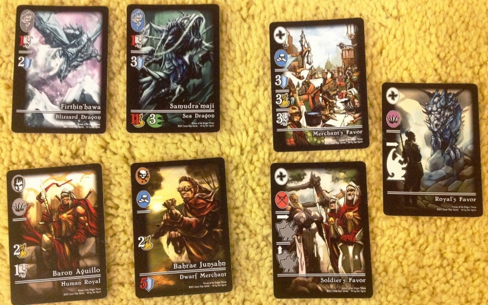 Princes of the Dragon Throne é um jogo de tabuleiro de controle de área e gerenciamento de recursos que utiliza construção de deck como direcional para os outros elementos do jogo. Jogadores selecionam cartas de uma reserva continuamente mudando de oportunidades para construir um baralho único de recrutas. Jogadores gerem os recursos para apoiar a sua revolta, e usam a influência de seus recrutas para ganhar o controle das várias Guildas dos Reinos, que por sua vez lhes dão habilidades especiais para promover sua causa .