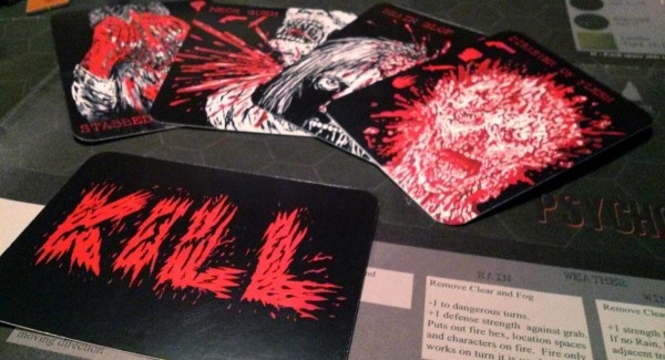 Psycho Raiders é um hex tático e contra-jogo com cada token representando um personagem individual. Os personagens possuem planilhas com algumas estatísticas individuais relacionadas à velocidade, força e vontade de viver. No jogo curto, os campistas podem vencer se algum deles escapar do extremo norte do mapa enquanto estiver escondido.