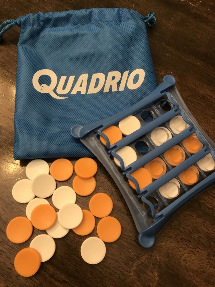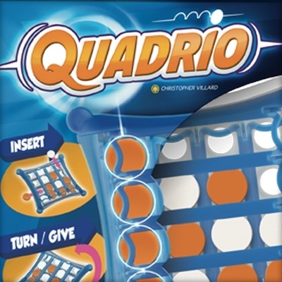 No jogo Quadrio de dois jogadores, os jogadores competem para ser o primeiro a colocar quatro discos consecutivos - mas é complicado fazê-lo, uma vez que os discos podem se mover para novos locais, pois os jogadores rodam o dispositivo de plástico que serve como área de jogo.