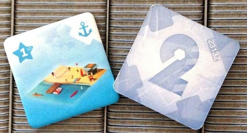 Um tile promocional para Quadropolis com uma praia e um símbolo de âncora (porto). Garante 1 ponto de vitória e não precisa de ativação.