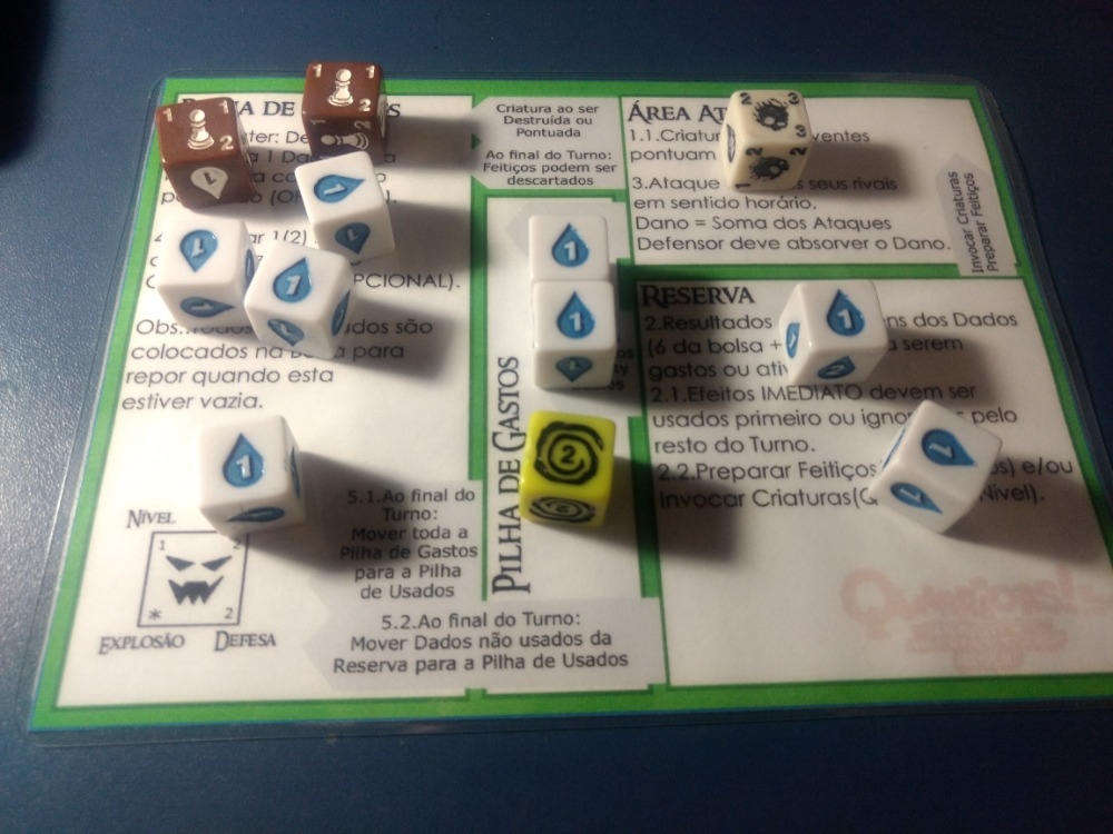 Playmate com resumo das regras em cada área indicando movimentação dos dados.