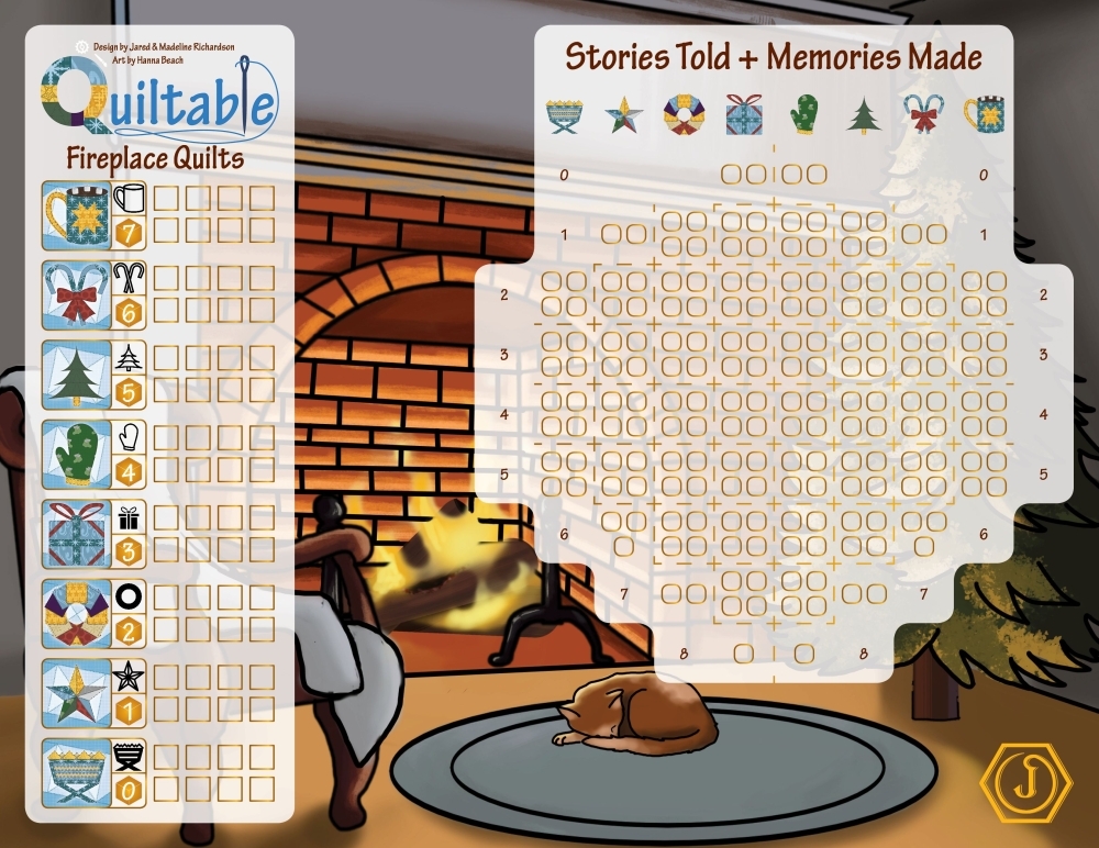 Quiltable: Fireplace Quilts é um jogo de quilting para imprimir, dos criadores de Quiltable: Paper Quilts e Quiltable: The Card Game. Enquanto a neve cai lá fora, junte-se à família e amigos ao redor da lareira para costurar um quilt cheio de memórias e histórias de férias.