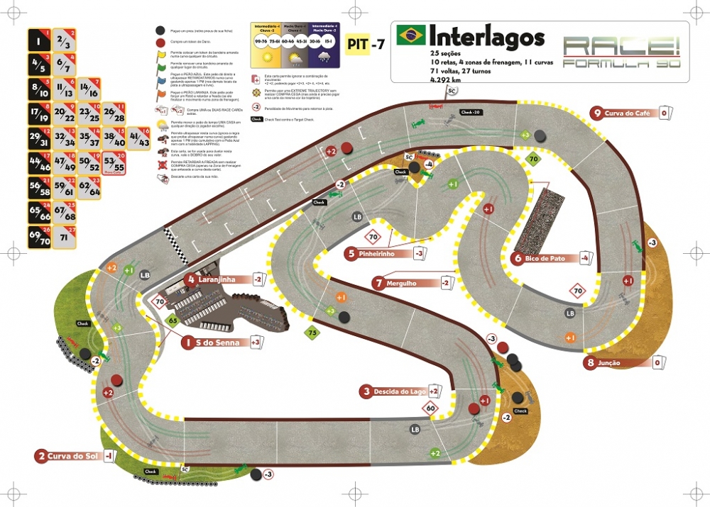 Pista de INTERLAGOS versão 1.16: Mudança no QUADRO DO TEMPO. As chances da corrida começar com SO Pista de INTERLAGOS versão 1.16: Mudança no QUADRO DO TEMPO. As chances da corrida começar com SOL subiram de 40% para 60% (pedido da galera em votação). Se você já imprimiu sua pista, cole por cima ou corrija manualmente. Descolado 446 0