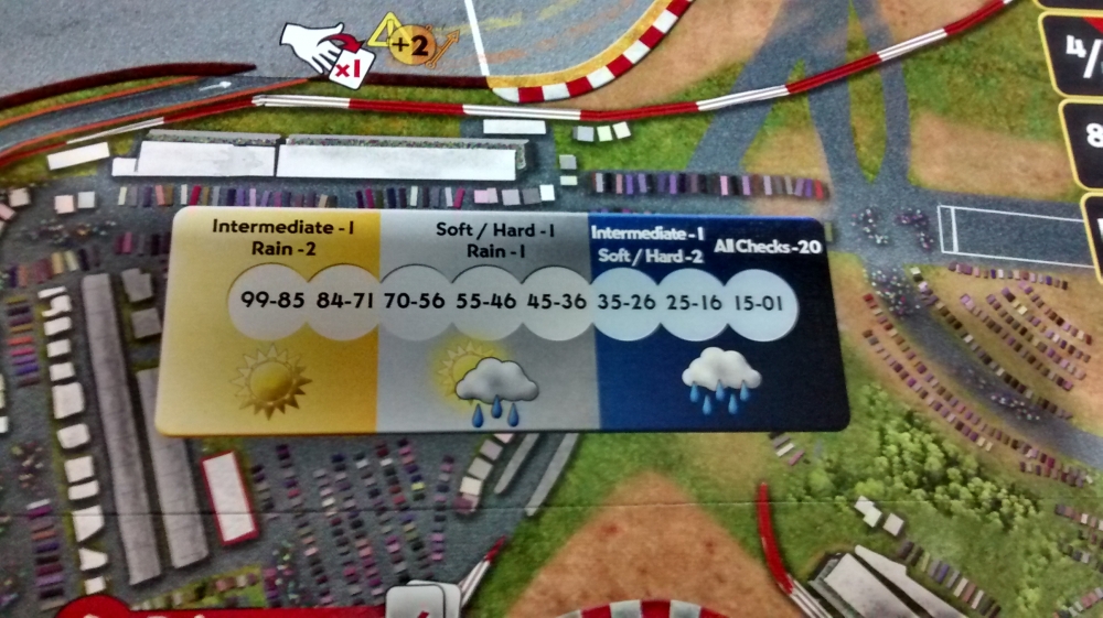 Um tabuleiro dupla face contendo as pistas de Barcelona e Silverstone;