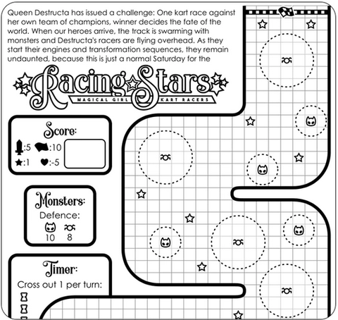 As Racing Stars são uma equipe superpoderosa de garotas mágicas pilotos de kart. A rainha Destructa os desafiou para uma corrida e convocou um exército de monstros para ajudar seu time a vencer.
