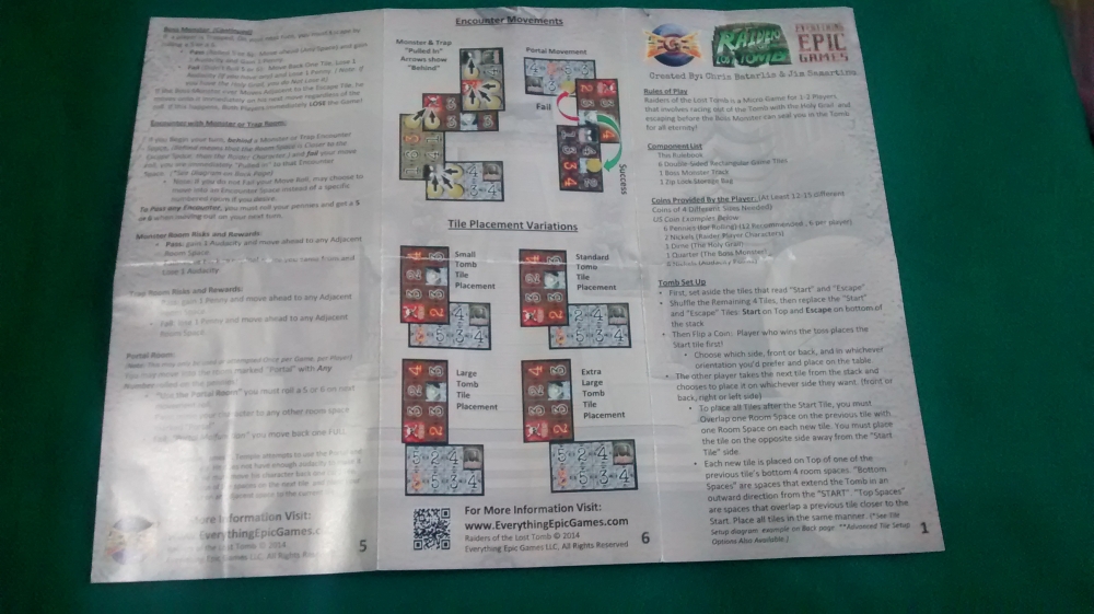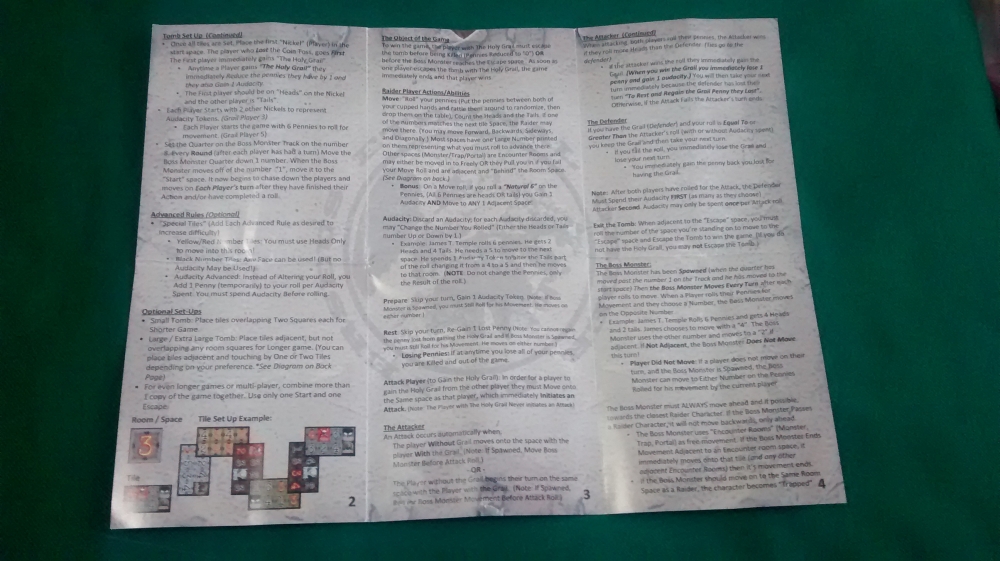 Depois que o túmulo está configurado, cada jogador se reveza rolando um conjunto de moedas de um centavo (D2) e dependendo de quantos Caras ou Coroas recebem, eles uma quantidade de espaços para se mover. Há perigos ao longo do caminho que os jogadores vão tentar evitar, como salas de armadilha e salas com monstros... e há também a poderosa Sala Portal, que permite aos jogadores teletransportarem-se instantaneamente entre os locais!