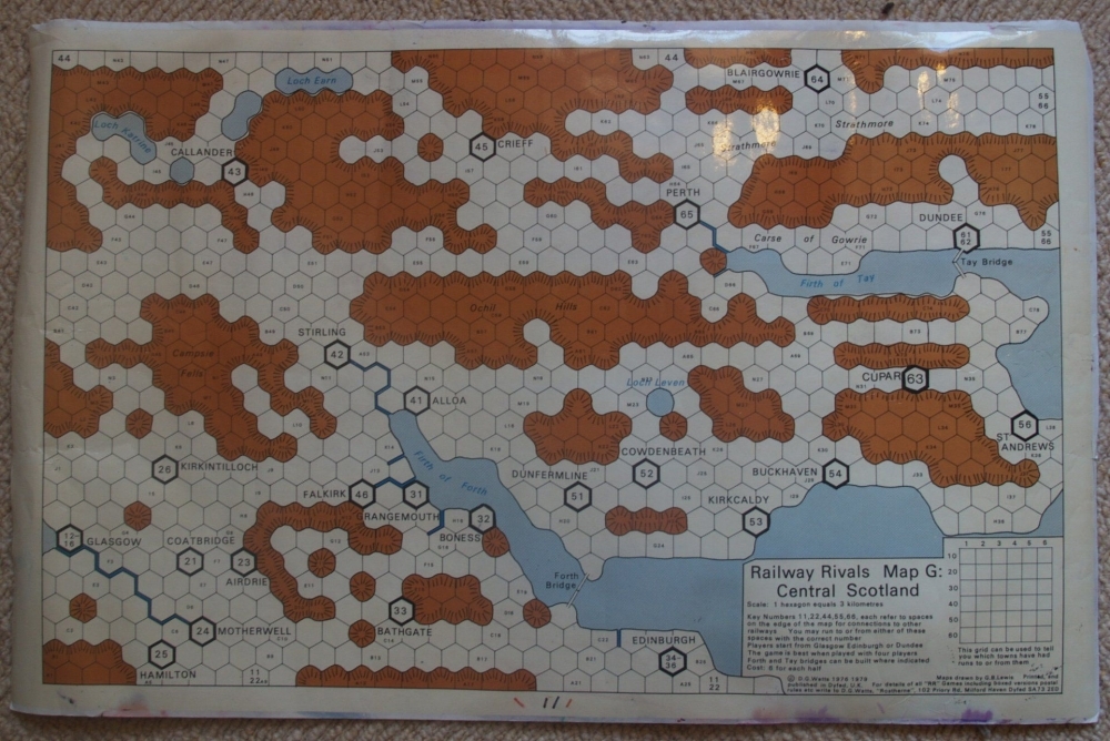 O mapa abrange o centro da Escócia, desde Glasgow no oeste, Edimburgo no sul e Dundee no norte. Embora seja um mapa montanhoso, a maioria das colinas está em áreas que não atrapalham muito. Existem números-chave nas bordas do mapa e a capacidade de construir as pontes Forth e Tay.