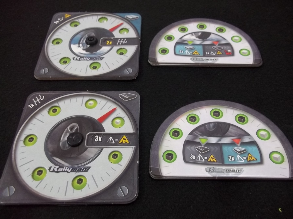 Os painéis da esquerda são da expansão DIRT e os da direita são os que vem no RALLYMAN.