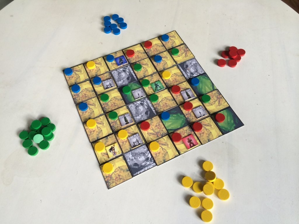 Eliminação de Jogadores, Influência / Maioria na Área, Jogadores com Diferentes Habilidades, Movimento em Grades, Tabuleiro Modular