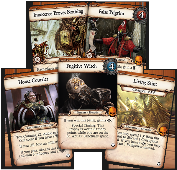 - Cenários adicionais, cartas de Missões, corrupção, ameaça e relíquia.