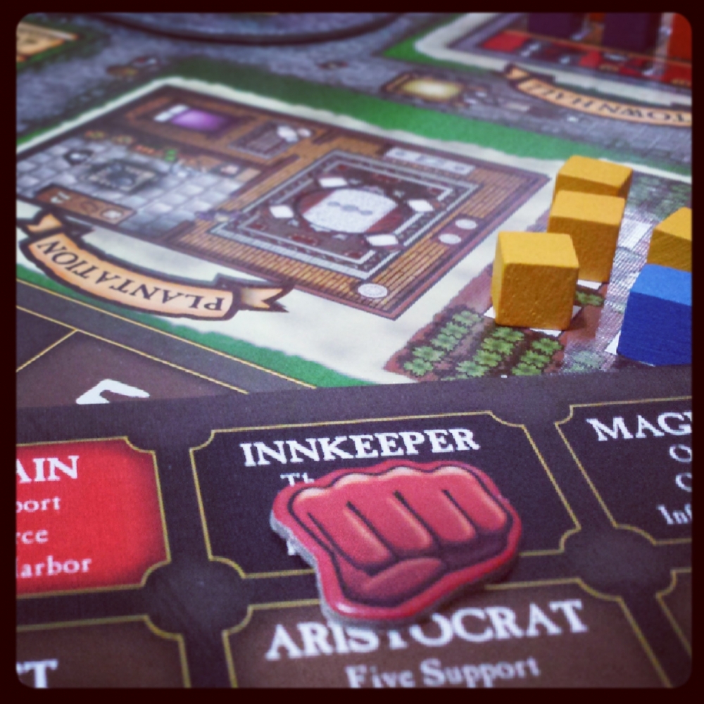 Secretamente faça propostas contra os seus adversários para ganhar pontos de vitória, controlar territórios (que valem pontos de vitória no final da partida) e arrecadar mais marcadores de Ouro, Chantagem e Força para a próxima rodada de proposta! Você vai tentar controlar a taberna ou fortaleza? O porto ou a fazenda? Saber onde pressionar por pontos – e onde recuar e deixar que seus adversários lutarem – é a chave para a vitória. Quem tiver mais pontos de vitória no final da partida ganha. É um jogo de blefe, contra-blefe e surpresa!