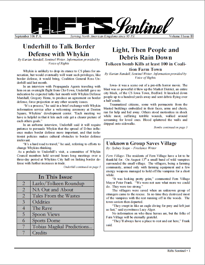 Rifts - Sentinel Volume I, Issue III (2001)