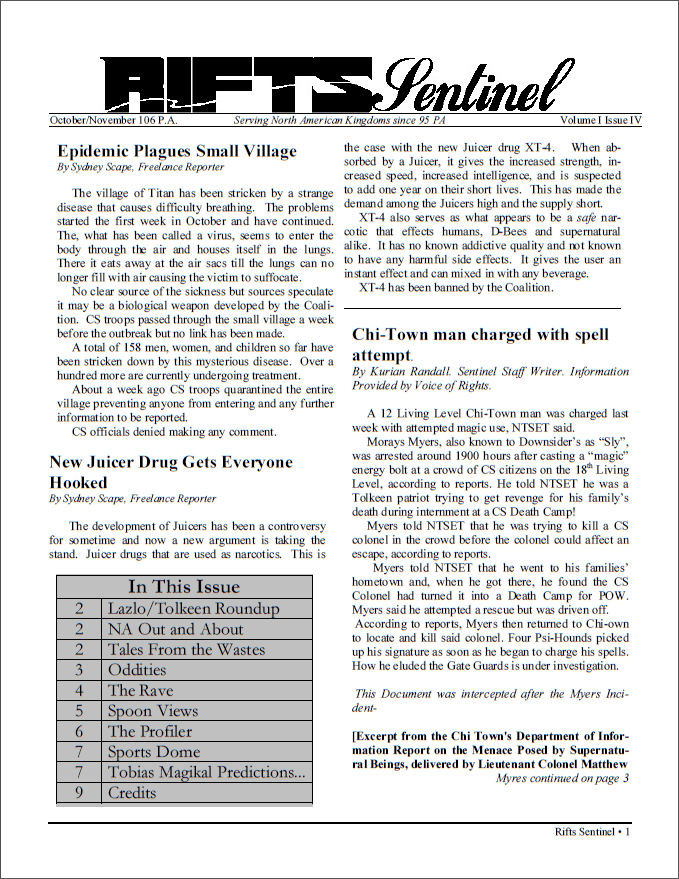 Rifts - Sentinel Volume I, Issue IV (2001)