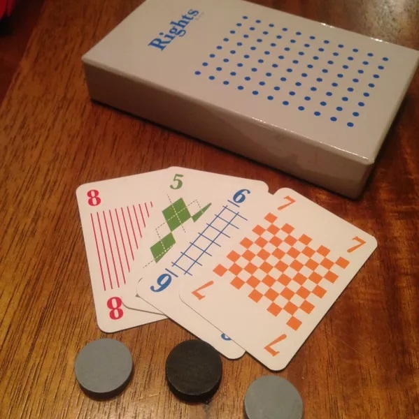 Em Rights, os jogadores abaixam cartas com diferentes padrões a fim de recolher a maioria e ganhar pontos de outras pessoas que abaixam as mesmas cartas.