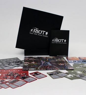 RIOT é um jogo de tabuleiro sobre conflito social,onde os lados envolvidos são polícia e desordeiros. Uma simulação de revolta e tensão política urbana.