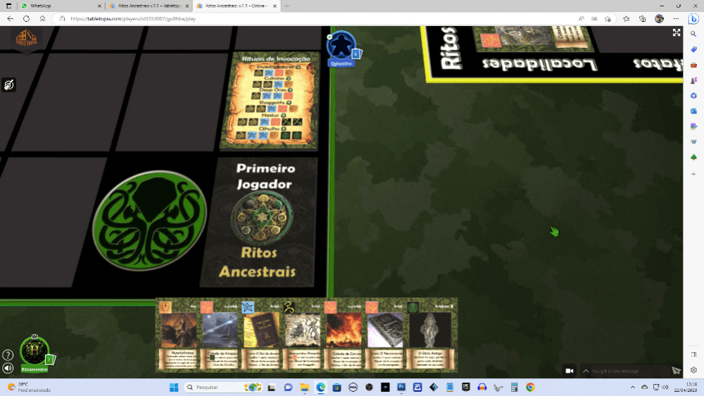 Disponível para testar através do Tabletopia diretamente com o Designer Hugo Bustilho.