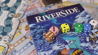 Riverside é um tipo diferente de jogo de rolar e escrever: O jogo vem com um tabuleiro modular, que compõe o percurso do jogo. Em um barco de cruzeiro fluvial, todos seguem o mesmo caminho, mas você pode levar seus turistas em passeios diferentes. Você pode planejar com antecedência, mas cuidado, os dados podem forçá-lo a mudar seus planos.