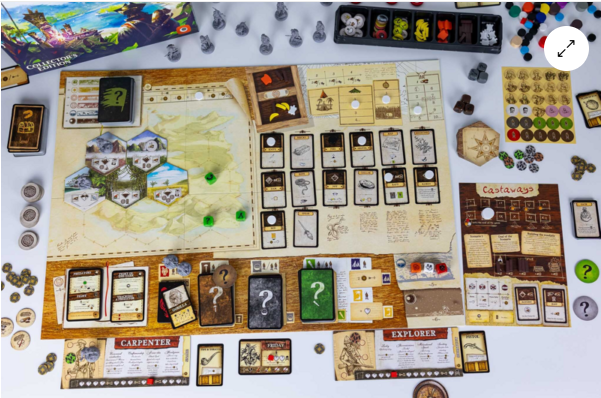 Robinson Crusoé: Aventuras na Ilha Amaldiçoada é um jogo cooperativo para 1 a 4 jogadores lançado originalmente em 2012 e nele os jogadores que enfrentarão os desafios de construir um abrigo, encontrar comida, lutar contra feras e se proteger das mudanças climáticas. Construir muros ao redor de suas casas, domesticar animais, construir armas e ferramentas com o que eles encontram e muito mais os espera na ilha.
