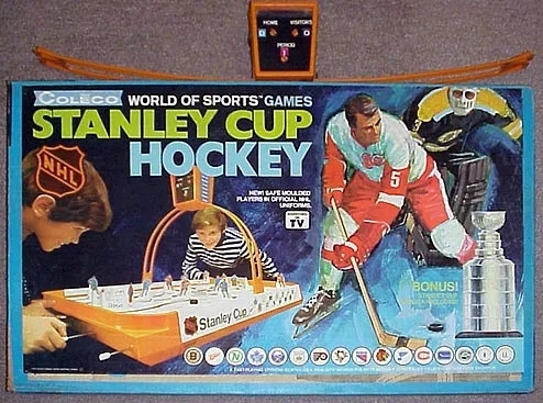 Hastes de aço com engrenagens de metal foram usadas antes das de plástico, o sistema de engrenagens de plástico foi rapidamente abandonado, pois as engrenagens não duravam. A partir daí, uma mola curva foi usada (ImageID: 427829) da haste para o controle deslizante do jogador. Isso funcionou bem para a durabilidade. Isso mudou o jogo consideravelmente, pois havia um pouco de ação de primavera no tiro. Golpes de tapa eram menos poderosos, mas golpes de pulso funcionavam melhor. Muitos layouts de gelo diferentes foram feitos para o movimento da vara e do jogador dentro dos segmentos de pista definidos. Pistas giratórias faziam os jogadores parecerem que estavam patinando no gelo. Isso mudou o jogo e as táticas para cada jogo, foi considerado ter vantagem no gelo em casa, já que você estava acostumado com o design da superfície do jogo. Você sabia como o disco ricocheteou nas tábuas e onde explorar as melhores chances de gol. Vários discos foram usados, os mais pesados ​​funcionaram melhor com o sistema de engrenagens, os mais leves funcionaram melhor com o sistema de molas. O disco com a bola de aço no centro se moveu mais rápido e foi o mais popular para o jogador ávido.