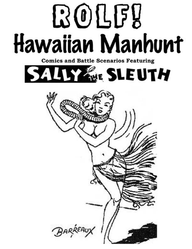 ROLF!: Hawaiian Manhunt apresenta um episódio clássico de Sally the Sleuth de Adolphe Barreuax, um trio de cenários de batalha ultrajantes que formam uma espécie de sequência de ROLF! co-criador L.L. Hundal, e personagens pré-gerados e duas novas grafias ("Change Trait" e "Oh, No You Didn't!"
