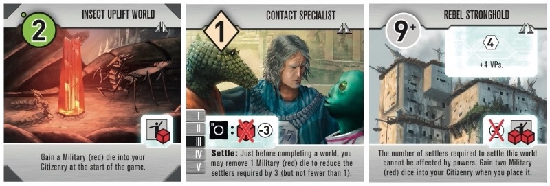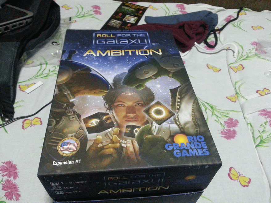 Roll for the Galaxy: Ambition inclui novas facções, novos dados, tiles novos, e algumas coisas mais para Roll for the Galaxy.