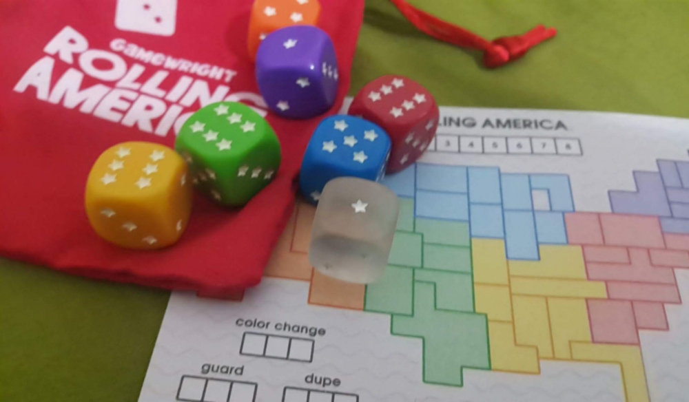 Rolling America, baseado no lançamento de 2014 Rolling Japan, é um jogo leve e "solitário" para vários jogadores. Cada jogador tem um mapa dos EUA dividido de maneira fictícia em 50 estados que estão misturados em seis áreas diferentes.
