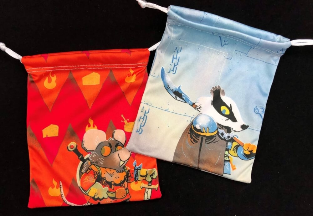 Um conjunto de duas bolsas com cordão para armazenar os dois clãs de expansão de Root: Marauders. Estas são bolsas de microfibra impressas por sublimação, com as bolsas medindo 16 cm de profundidade por 13 cm de largura.