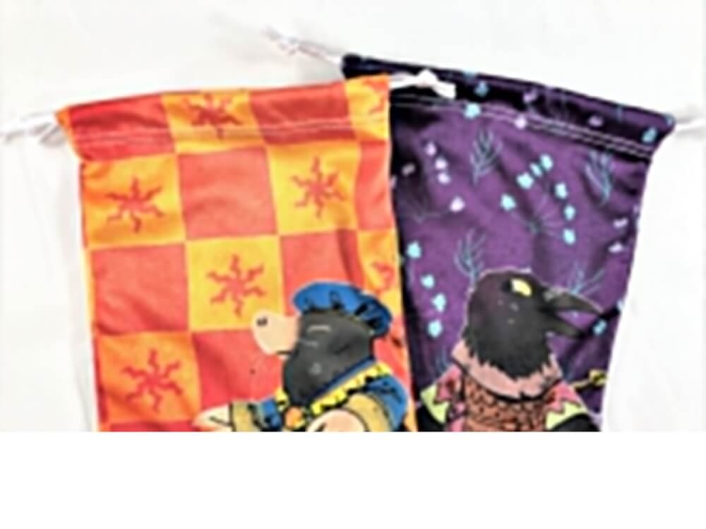 Um conjunto de duas bolsas com cordão para armazenar os dois clãs de expansão de Root: Underworld. Essas são bolsas de microfibra impressas por sublimação, com as bolsas medindo 16 cm de profundidade por 13 cm de largura.