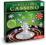 Roleta é um jogo emocionante de teste de sorte! Escolha as suas fichas, opte pelos números, par ou ímpar, preto ou branco e gire a roleta para fazer pontos de vitória conforme tabela de pontuação no verso da caixa.