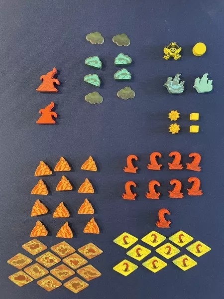 Opção do Kickstarter que atualiza peças de perigo de pepalão para meeples de madeira.