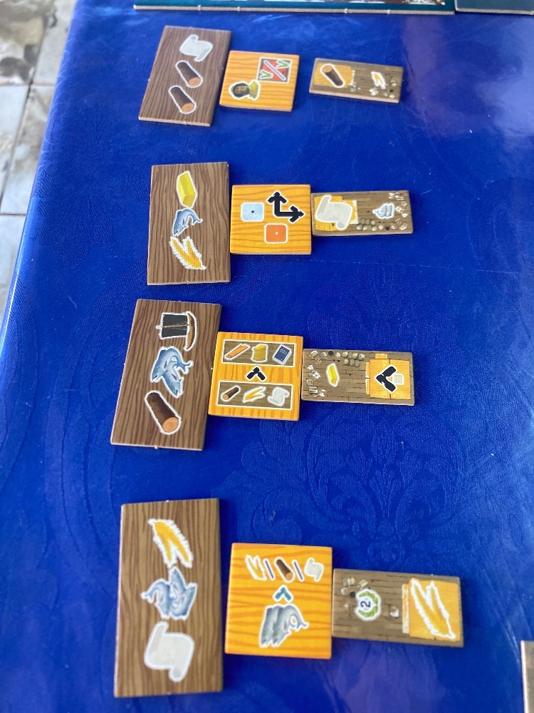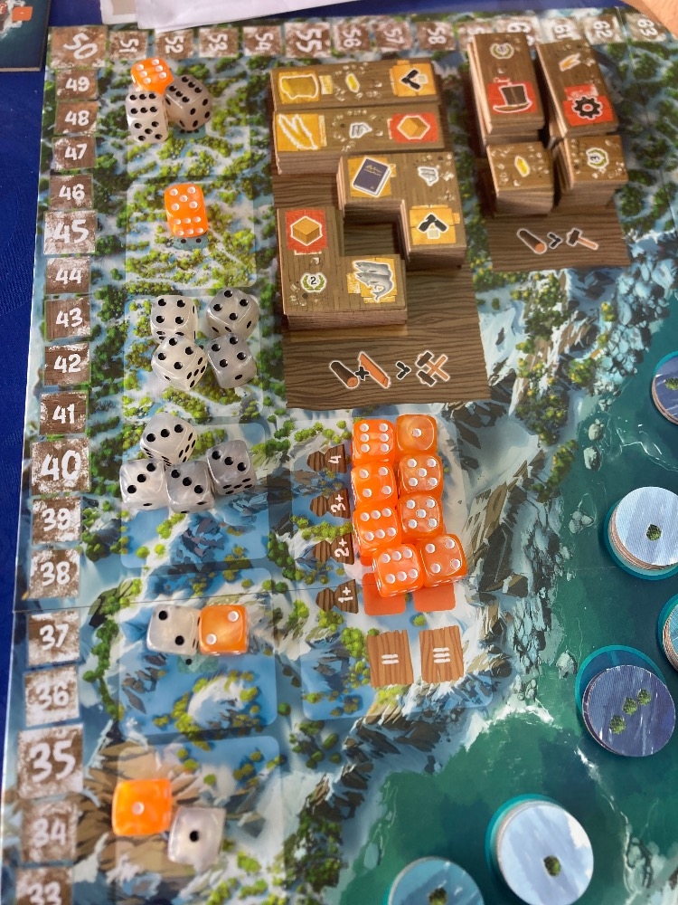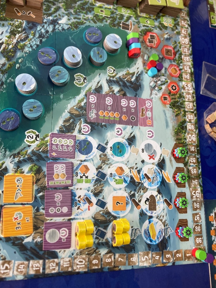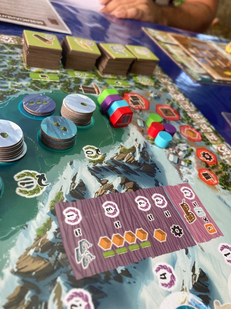 Ao longo de três rodadas, os jogadores selecionam dados para ativar edifícios em seu assentamento. Isso fornece recursos e também ativa ações como enviar seu barco de pesca, avançar pelas diversas trilhas tecnológicas, completar ordens comerciais ou construir novos edifícios.