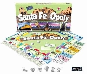 Um jogo de tabuleiro sobre a GRANDE cidade de Santa Fé! Escolhemos alguns marcos e tradições favoritos, misturados em algumas montanhas majestosas, belos pueblos, artes, uma ópera mundialmente famosa e muita DIVERSÃO... e voilà (vwä lä) - eis que; SANTA FE-OPÓLIO! Pegue alguns amigos e reúna 'Round!