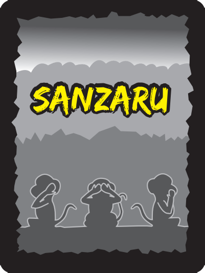 - 48 cartas-truques em 3 baralhos - azul (Mizaru), vermelho (Kikazaru) e verde (Iwazaru) - com valores entre 1 a 48. Cartas de alto e baixo valores têm 1 ou 2 símbolos de pontos.