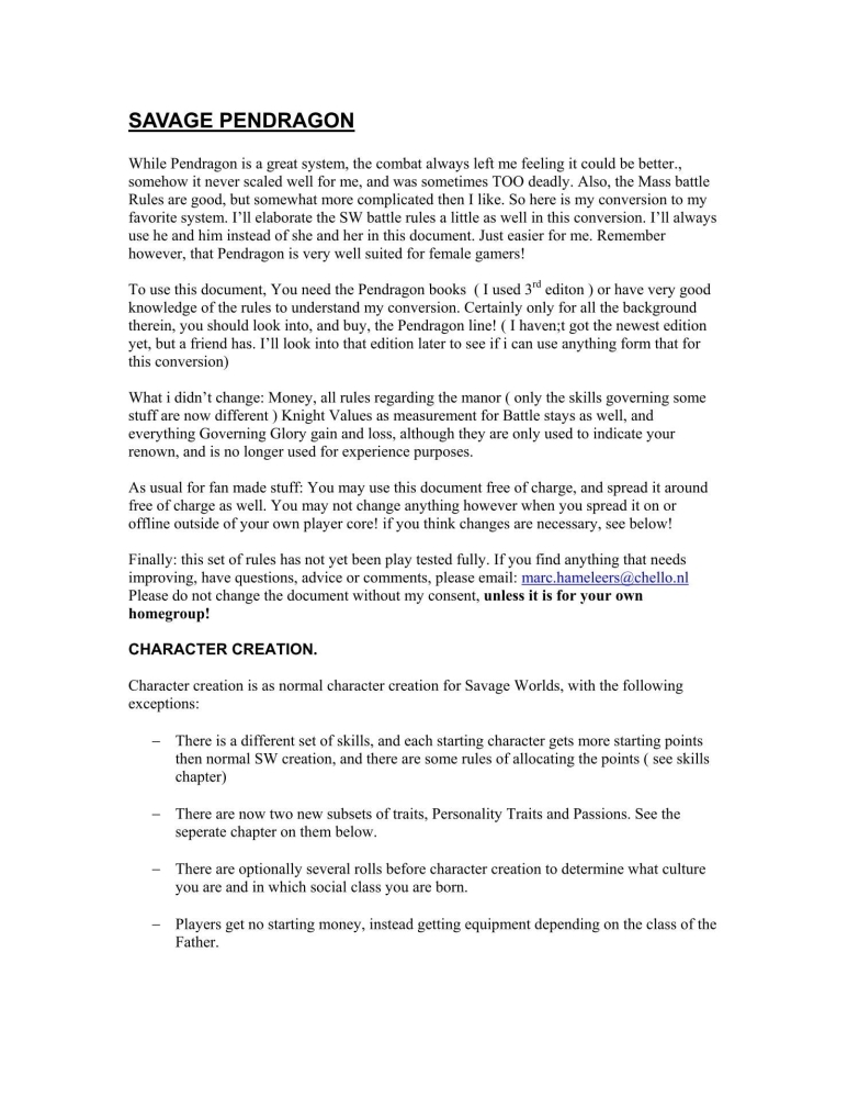 Para usar este documento, você precisa dos livros Pendragon (usei a 3ª edição) ou ter um bom conhecimento das regras para entender minha conversão. Certamente, apenas por todo o contexto, você deve pesquisar e comprar a linha Pendragon! (Eu ainda não tenho a edição mais recente, mas um amigo tem. Vou dar uma olhada nessa edição mais tarde para ver se consigo usar algo dela para essa conversão)