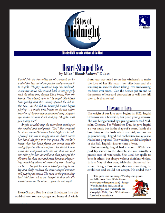Savage Worlds (Revised Edition) - Heart-Shaped Box (2004)
