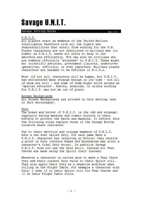 Savage Worlds (Revised Edition) - Savage U.N.I.T. (2007)