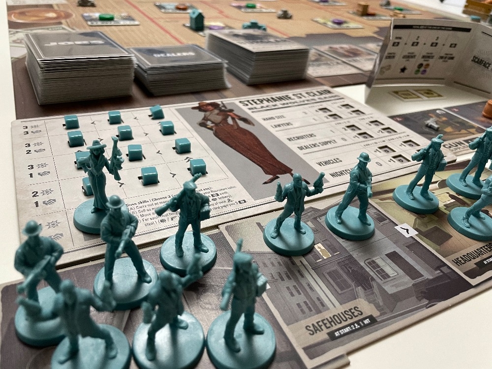 Scarface 1920 combina a colocação do trabalhador com a mecânica de construção de deck em um jogo onde você terá que recrutar novos associados, fechar novos negócios, encher as ruas de Chicago com seus bandidos, melhorar sua sede - e fazer alguns trabalhos sujos ao longo do caminho.